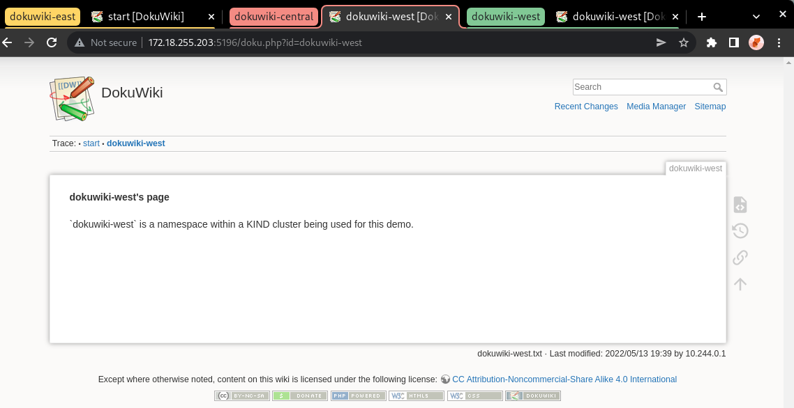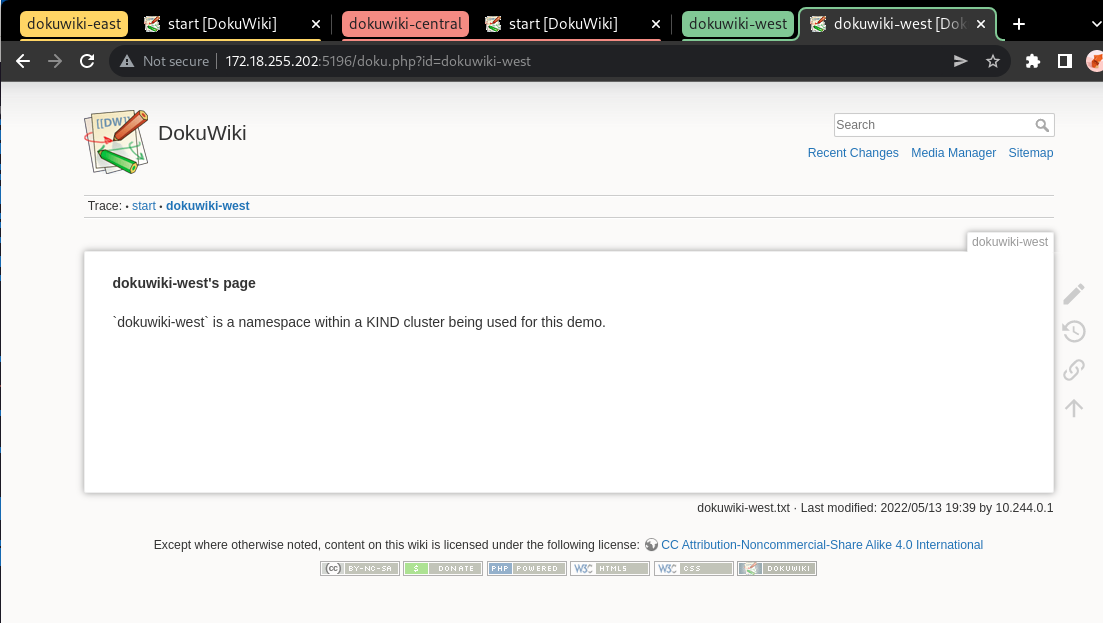 kubectl apply -f examples/dokuwiki/ -n dokuwiki-east
