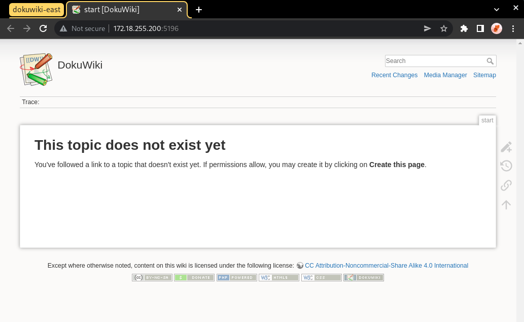 Once you hit Enter, you should see the page we had just created in the dokuwiki-west